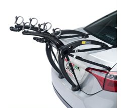 The saris bones 2 bike trunk rack has an innovative arc based design that separates bikes to different levels and fits over the spoilers of many cars.