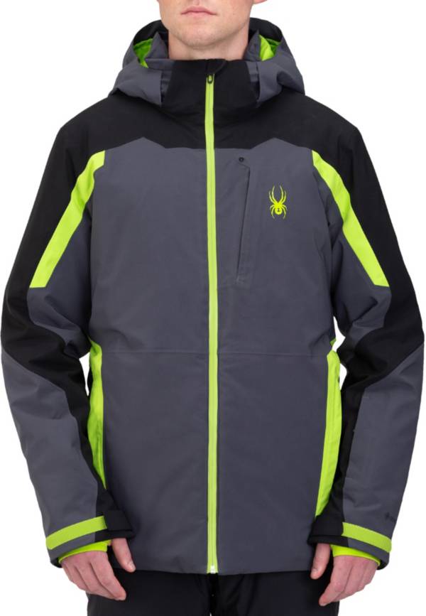 Between the distinctive spyder look in bold color blocks and fully loaded functionality adjustable openings from hood to cuffs watertight ykk aquaguard zippers interior stretch panels gore tex fabric and toasty 100g primaloft silver eco insulation there s something for every winter athlete built.