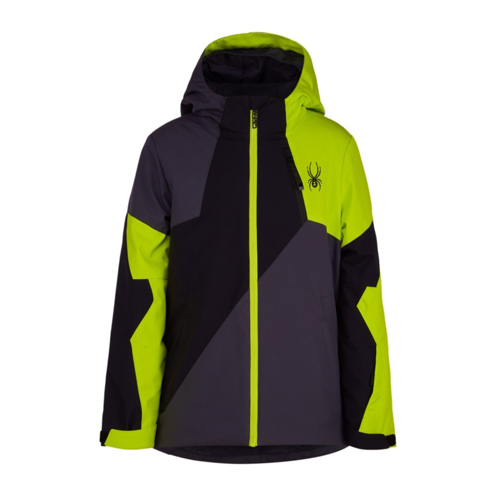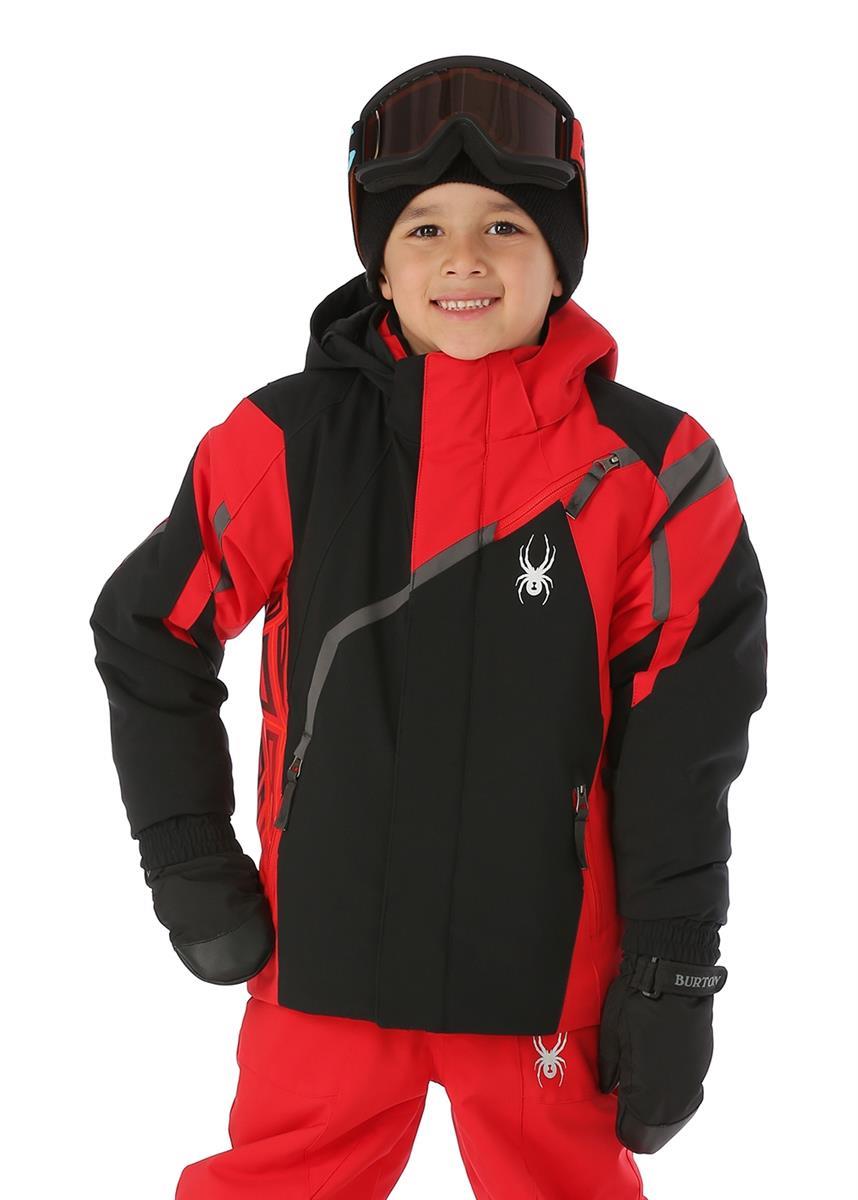 If your boy loves spiders and what boy doesn t then he ll love the spyder mini challenger insulated ski jacket sporting a cool spider web graphic under the arm and the iconic spyder logo this jacket has boy approved style and parent approved features and fabrics.